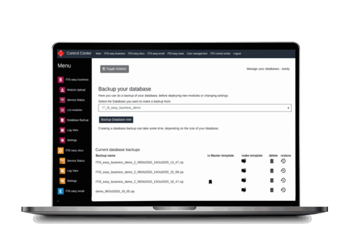 Experience full control of your business software suite with ITISeasy.control-center.