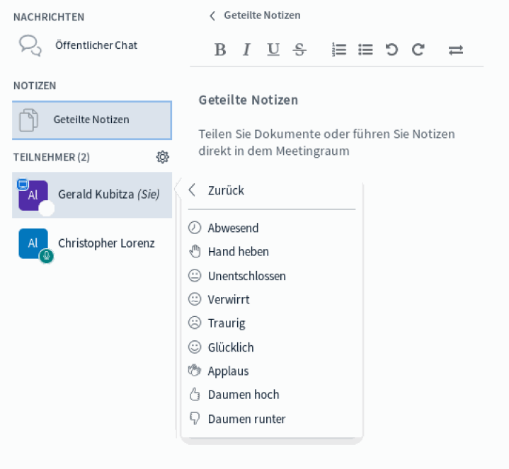 In the room settings, you can structure the meeting in advance. You can determine which options are available to participants.