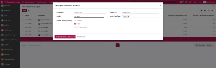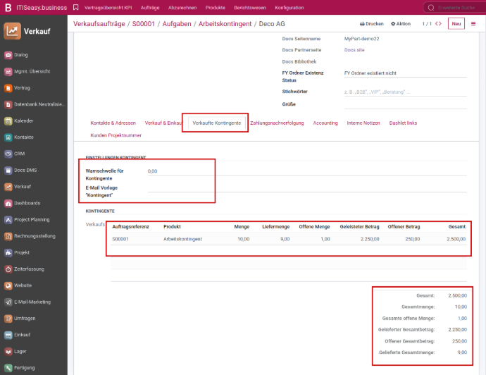 Quota Management in ITISeasy.business lets you bill customers upfront for a specific number of hours