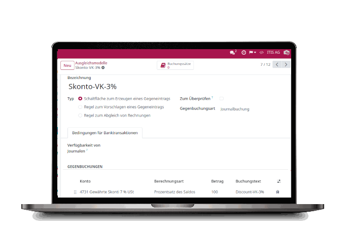 Within your reconciliation models, you can define recurring entries and frequently used counter accounts—such as those for early payment discounts—allowing you to complete the accounting entry with just one click.