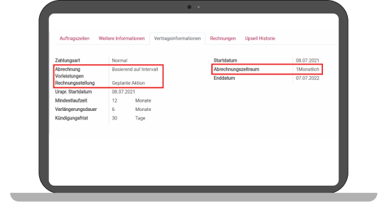In the contract information, it can be determined how the contract should be billed. In this case, the invoice is automatically generated monthly and only needs to be confirmed.