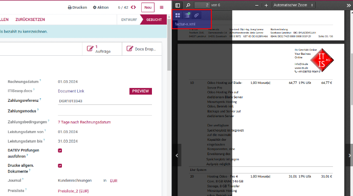 Outgoing e-invoices are enriched with XML for legal compliance