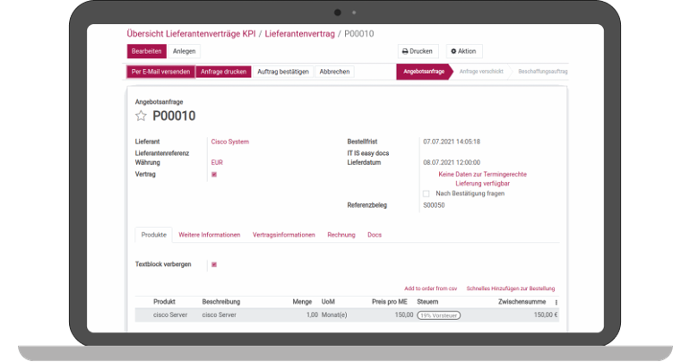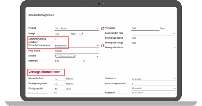 Example: Selling a rented server? ITISeasy.business automatically creates a supplier contract for procurement!