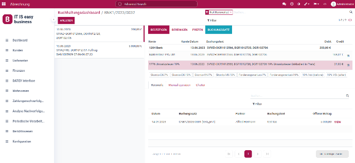 Even the fundamentals have been touched upon. Financials with interfaces to third-party providers, including Datev and banks (EBICS), for submitting official German reports (Instrastat / ZM) and, of course, VAT. Even Lucanet has established an interface with our product, especially benefiting publicly traded companies. And the basic functions eliminated from the community version of Odoo, such as bank statement imports and reconciliation, are available with us as well. Additionally, we offer a German dunning process and a set of documents compliant with DIN standards for business correspondence.